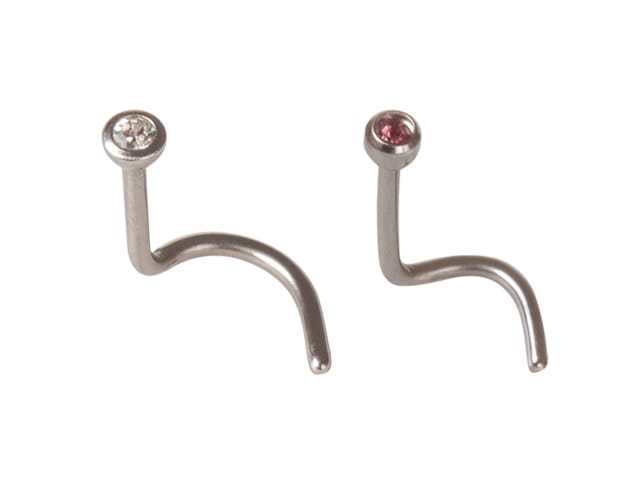 - 2 pack of Twist Nose Studs in Crystal and Light Pink
