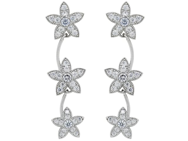 - 3 Drop Cubic Zirconia Flowers Fashion Stud Earring