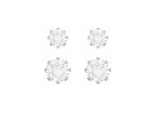 - Includes a Set of 3mm and a Set of 4mm Round Cubic Zirconia Studs