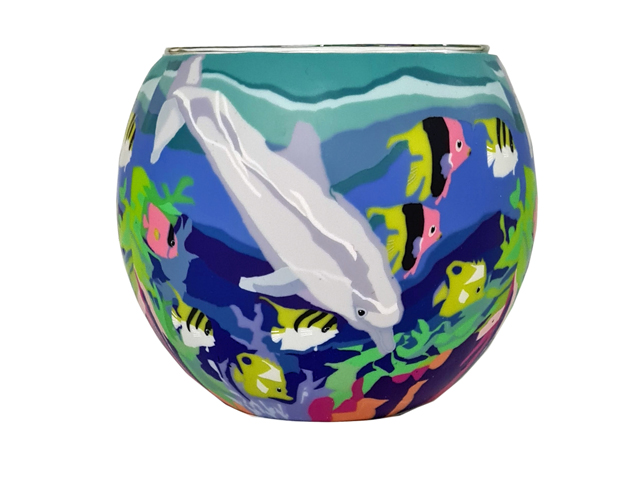 GLASS CANDLE HOLDER MARINE LIFE CH2022-04